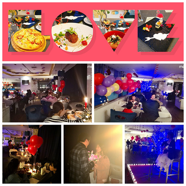 2月14日情人节当晚,天朗酒管旗下天朗时代大酒店特地在蓝宝复合西餐厅打造了情人节专属派对。精心准备的浪漫情侣套餐加上歌手的表演,将这份浓浓的甜蜜融于美食之中。