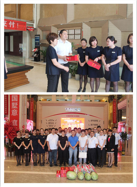 进入夏季以来,高温天气持续不下,为了给奋战在各项目生产建设一线的工作人员带去一丝清凉,2015年8月11日,在天朗控股集团副总裁、天朗蔚蓝开发公司总经理马琳女士的统一安排下,由天朗蔚蓝开发公司、天朗永泽园林、天朗顺泽装饰各部门负责人面对工程、销售一线员工开展清凉慰问活动。