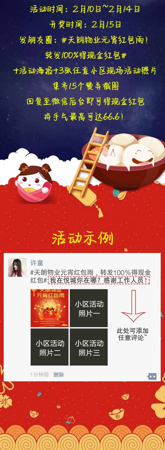 2017年的元宵节马上就要到了,在元宵佳节来临之际,天朗物业给您送福利啦。只需简单操作即可领取现金红包大奖。赶快来参与吧!