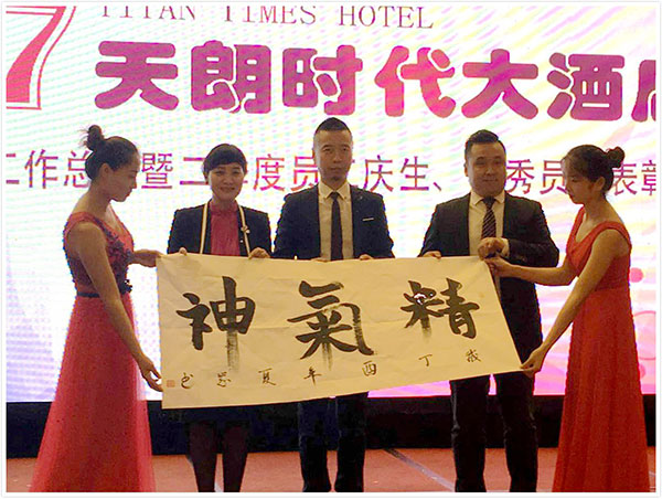 7月28日,金风送爽,天气格外晴朗,天朗时代大酒店迎来了“2017上半年工作总结、二季度优秀员工表彰及季度员工庆生大会”隆重召开。天朗控股集团周岗副总裁在百忙之中抽出时间亲临会场,并送上了鼓舞人心的致辞,周总还专门写了“精气神”三个榜书大字作为给本次活动的贺礼。
