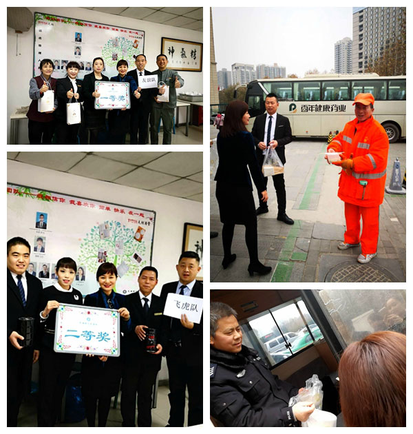 最终,由工程部、客房部联合的友谊队获得本次比赛的第一名。酒店也早早准备好了丰厚的礼品作为对参赛选手的奖励。当然,大家也不忘酒店周边值班的公卫和公安值勤人员。让他们也能分享到来自天朗的冬日温暖。