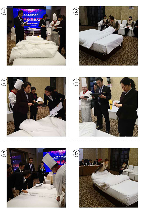 为全面考核参赛员工的技能水平,本次技能比赛共分为理论考试、实操考核二个部分进行,理论考试紧紧围绕岗位基础知识和专业知识分为笔试和现场问答两个方面进行,实操考核以操作标准和操作程序为基准,比质量、比效率。在比赛的过程中,客房部的中式铺床、餐饮部的中餐摆台、营销部的前台接待所展示出的专业技能,获得了前来观摩学习的员工一声声赞叹。在评审区由酒店管理人员组成的评委组,对照评分标准认真为每一位选手评分,用秒表计时、用卷尺量误差,一丝不苟,公平公正。经过激烈的比拼,2018年度的技能比赛获奖名单产生了,客房部的徐金娟、餐饮部的马秋红、营销部的赵俊杰分获一等奖。天朗锦城艺术酒店总经理何琨女士及管理人员为获奖的员工颁发了奖项,并合影留念。