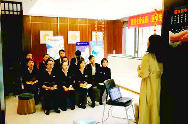 沐雨沐风过秋冬,温暖健康悦生堂。天朗悦生堂为了让会员们度过一个温暖而又健康的冬季,11月8日新引进药浴项目,悦生堂总经理王妮女士特别邀请了金御瑶品牌宋冉老师对悦生堂员工们进行新项目培训。