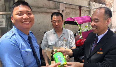 近日西安气温连续多日高达40摄氏度,还有很多人依然坚守在室外的工作岗位上,他们都是炎炎烈日下的劳动者。为了表达对他们的敬意,天朗控股集团党委酒管党支部心系群众,举办了“炎炎夏日送清凉”专题党建活动。天