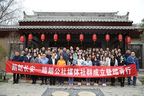 天朗控股集团董事长孙茵,副总裁周岗,天朗文商旅公司副总经理高庆华,集团综合管理部行政总监、朗朗长安社群负责人张倩与来自陕西及西安的60余位媒体嘉宾共聚一堂,共同见证“朗朗长安”首个专业社群组织“晴朗公社”的成立,并以春季踏青的方式实地探访项目示范区,领略唐村之美,共享春日美好时光。