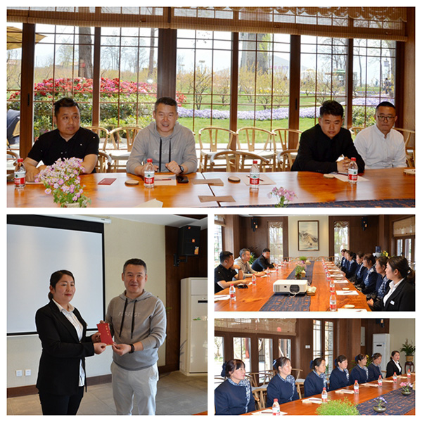 3月31日下午,天朗文商旅公司运营服务部保洁团队荣获部门颁发的季度奖,保洁主管陈静静从公司副总经理高庆华手中接过了奖金红包。