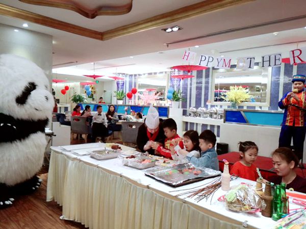 除了美食大餐、华服体验以外,酒店还特别推出了现场DIY美食、DIY饰品以及葫芦丝表演等环节。作为爱的传承,现场的一些小朋友也纷纷献上了自己对母亲的祝愿,舞蹈、快板、诗朗诵、小游戏让现场活动热闹非凡。孩子们和妈妈一起DIY饼干、包饺子、做手工,感受这份浓情厚情。