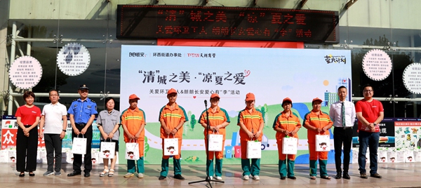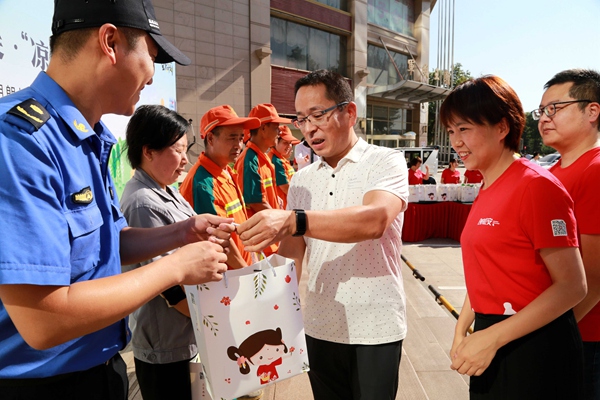 活动结束后,朗朗长安爱心小分队继续出发,为坚守在工作一线的环卫工人们送上朗朗长安清凉大“李”包,并感谢环卫工人们用双手为大家营造干净城市环境。