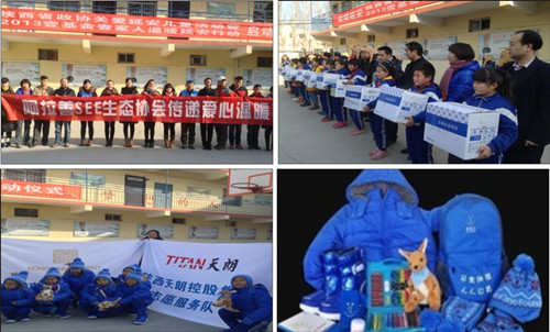 今夏,陕西延安地区遭受了特大暴雨洪涝灾害的侵袭,给当地造成巨大经济损失。目前,延安地区已经进入寒冬,为让灾区的孩子在这个冬天免受严寒侵袭,12月17日,天朗控股集团作为阿拉善SEE生态协会西北片区的主